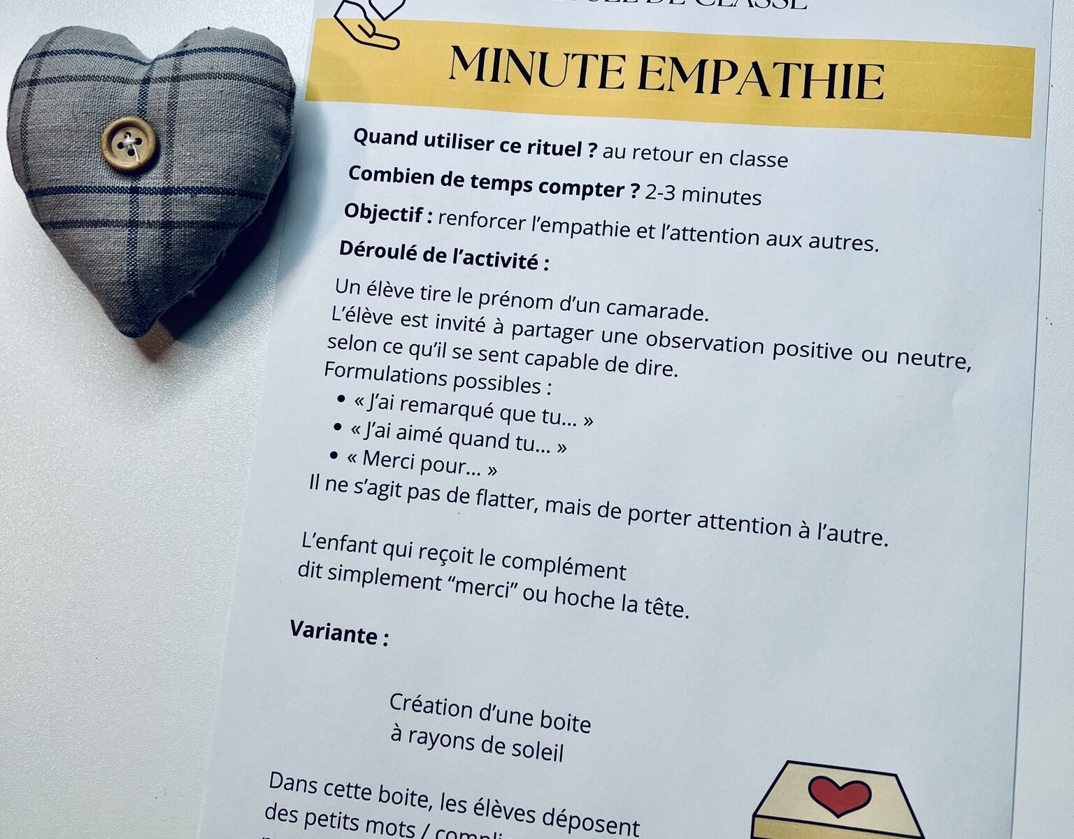 Si je reviens à cette “jolie” idée de la minute d’empathie, je vous invite maintenant à relire ce joli papier et ces consignes : que va-t-il se passer pour l’enfant qui n’aura pas de jolis compliments de la part des autres …. et pour ceux qui recevront des mots comme “gentil”…. Faudra-t-il toujours rester gentil et ne pas se laisser le droit de se défendre ?